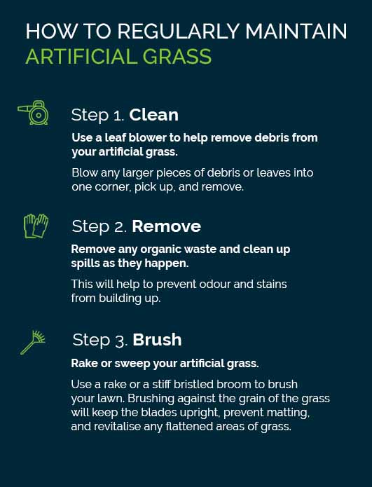 Weekly hosing of the lawn should take care of any odours, but you can use an odour neutraliser on your artificial turf if necessary.